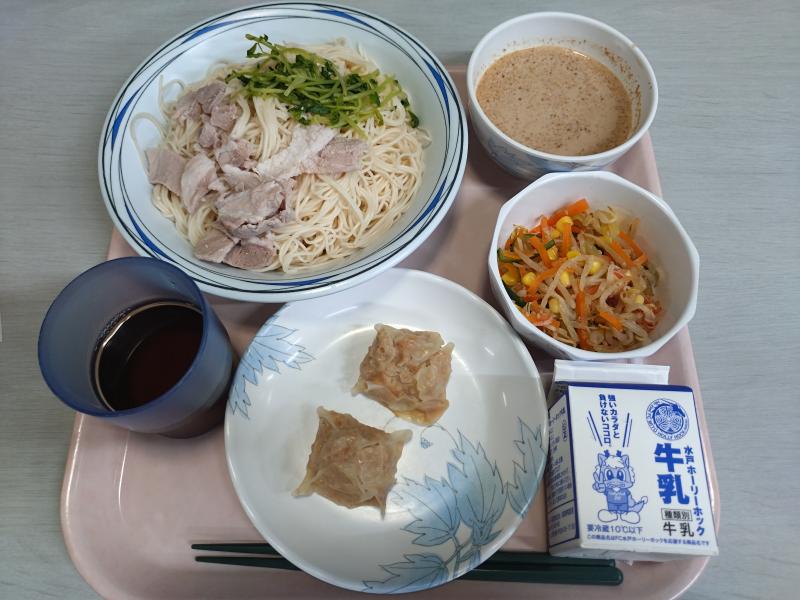 ・胡麻ダレそうめん ・大根入り焼売 ・中華風サラダ ・牛乳