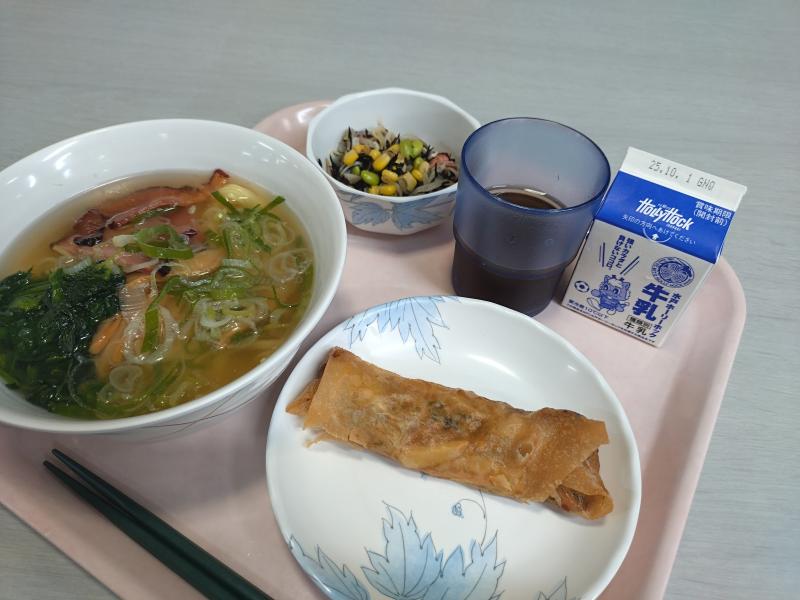 ・冷やしラーメン ・春巻き ・ひじきサラダ ・牛乳