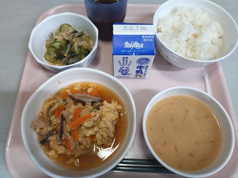 ・ご飯 ・親子煮 ・酢の物 ・味噌汁 ・牛乳