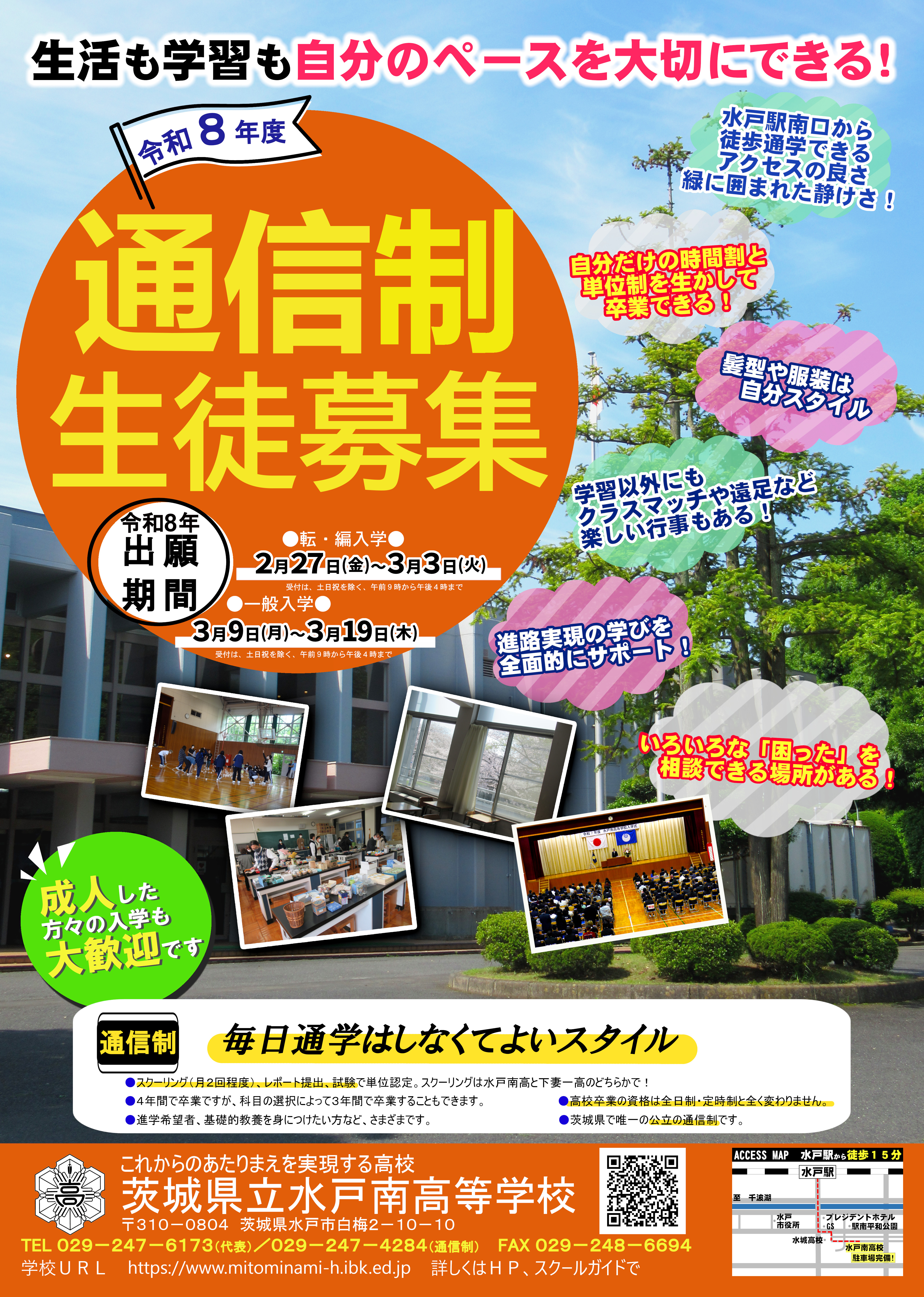 【通信制】令和8年度生徒募集要項(新入学、転入学、編入学)生徒募集要項